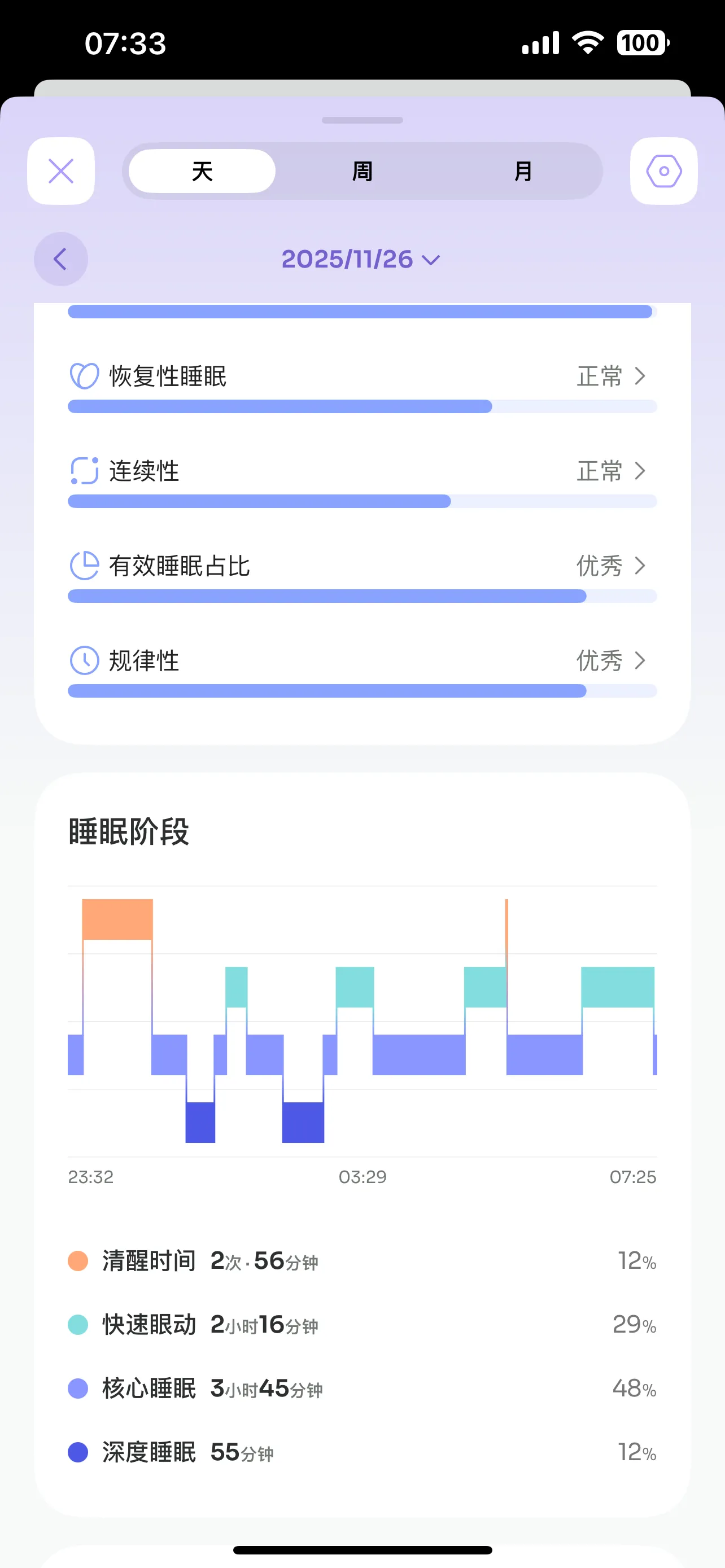 勉强维持在了深睡的最低时限了……唔,难道是因为昨天没有晒到太阳吗?