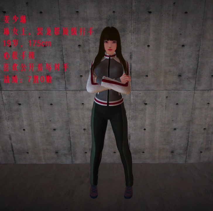 姜少琳:19岁,175cm,黑龙帮女打手,绰号琳女王,黑龙帮老大姜少龙的妹妹,战斗力超群,对待敌对帮派心狠手辣。
