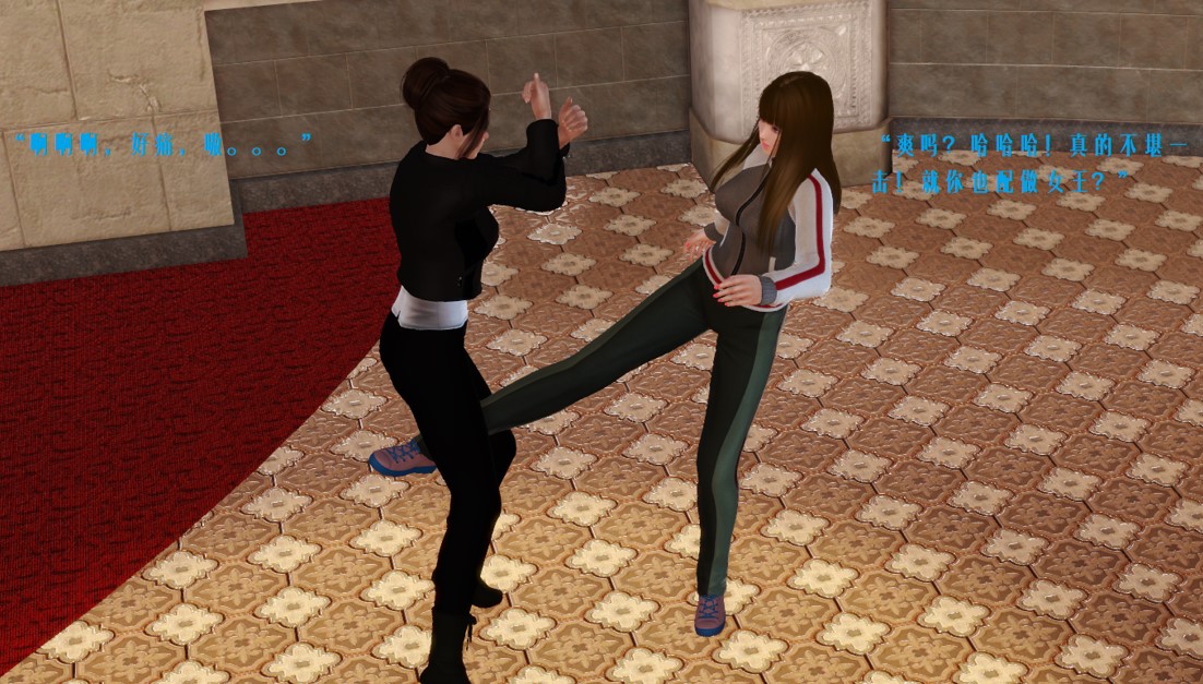 3,姜少琳挡下对手进攻后发起反击,打的毒蝎女王节节败退,姜少琳看准机会,一脚狠狠的踢中刘德芳的裆部,接着对着刘德芳丰满的双乳又是两记重摆拳。