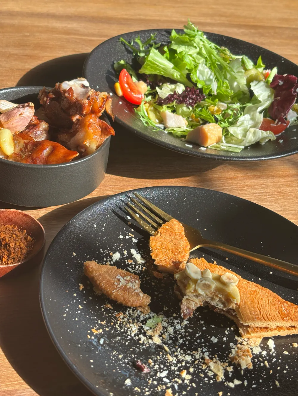 今天天气还挺好的,和k桑一起吃饭,外面比室内暖和,后来索性端着盘子到花园里来吃了w
