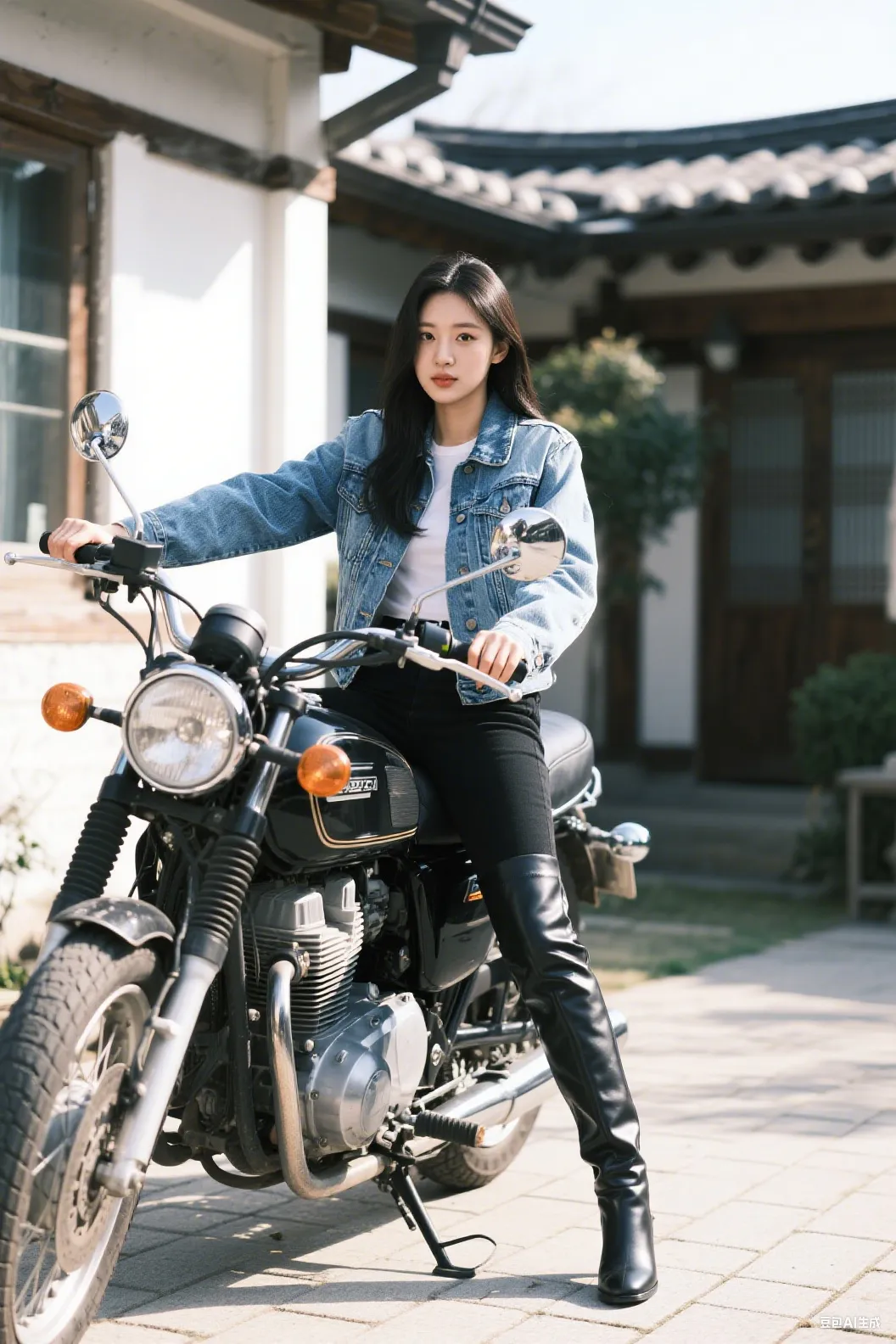 她起身的动作流畅自然,像是慢镜头般一帧一帧在我眼前放映。紧身牛仔裤紧紧贴合着她的双腿,勾勒出完美的线条,一路向下延伸至那双过膝高跟皮靴。靴子虽然廉价,却因为她的穿着而变得生动起来。粗糙的皮革包裹着她的小腿,随着她的动作微微褶皱,