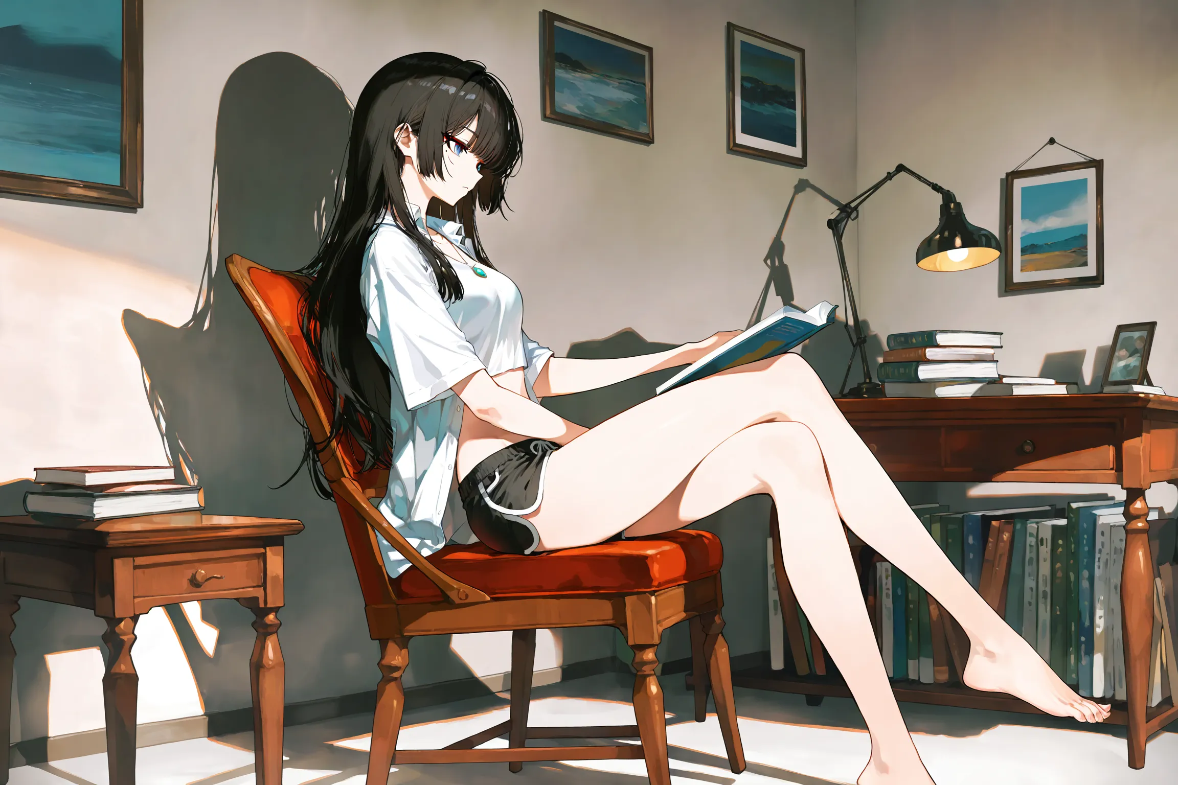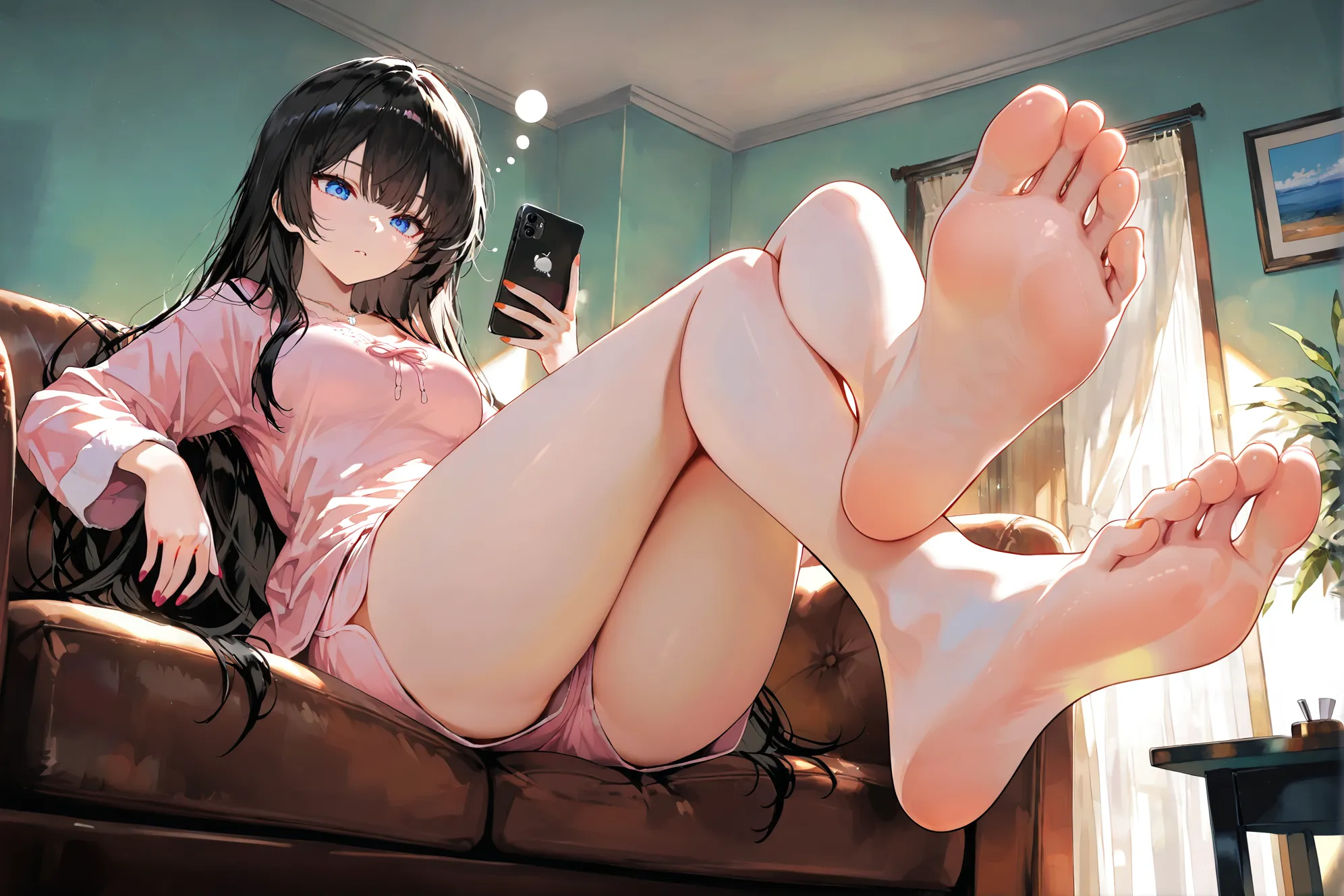 蓝茵的上身只穿了一件宽大的白色衬衫,下摆堪堪遮住臀部,两条修长白皙的大腿就这么随意交叠着,玉足足尖还在无意识地轻微晃动。