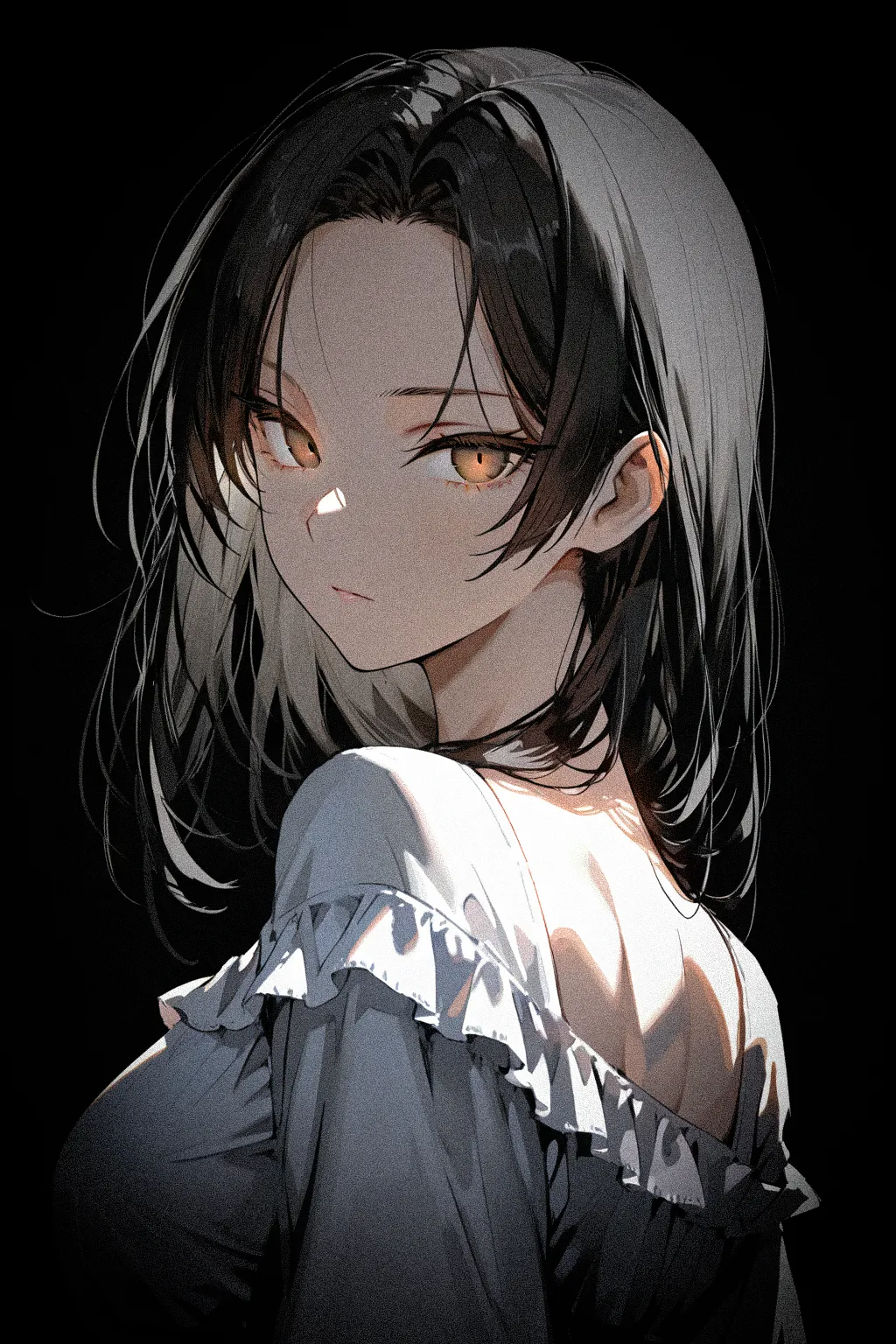 侧脸轮廓分明,高挺的鼻梁在灯光下投下一小片精致的阴影,皮肤白皙的近乎透明,依稀能看见太阳穴边淡青色的血管,那几缕乌黑亮丽的发丝垂落在脸颊旁随着她细微的动作轻微飘动着。
