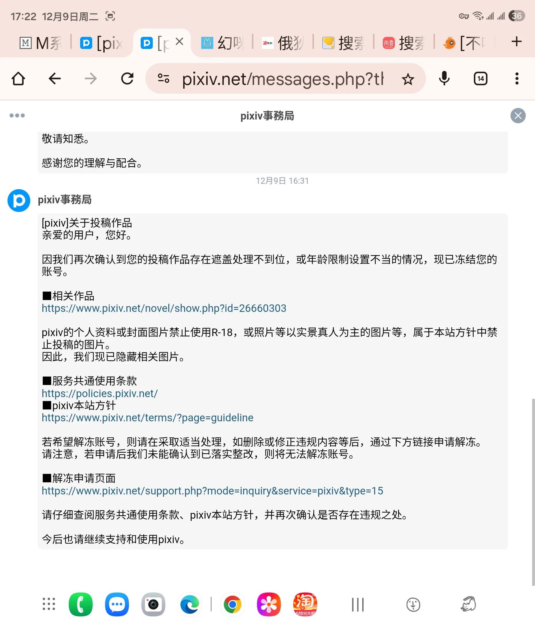 最新消息,我的pixiv可能又被封了,原因还是封面配图裸露问题,很令人郁闷的是,我那个配图也是pixiv本站里面找的,别人可以用,就我不能用。气死我了,每次pixiv都是半年一封我账号,算上这次,都封了我三次了,而且还是千粉关注的时候封,😮💨😮💨😮💨😮💨😮💨
