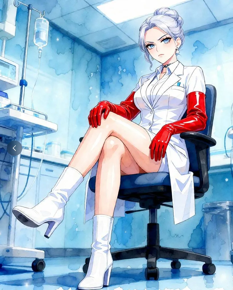 走回床边,婉儿医生将盒子放在小推车上,打开。里面整齐地排列着几双极长、充满光泽、且明显不是用于医疗的手套。她取出其中一双,是酒红色的,在灯光下泛着油腻的光泽。