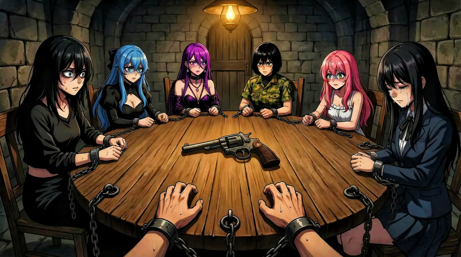 “头好痛......这是哪?”我睁开双眼,环绕着四周,身后是一个锁上的栅栏铁门,身前是一个巨大的圆桌,我坐在圆桌的一角,双手被用铁链锁在了身前的圆桌上,圆桌上还有七个和我情况一样的男女。