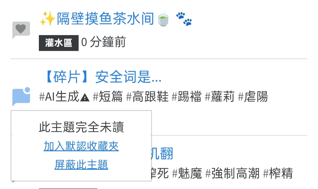 yu-e:↑拍拍yue老师……茶水间永远欢迎您的光临wcoukou111:↑我当然体谅作为管理员的难处,不过惹不起躲得起。希望这样的功能早点上线。在此之前或者在某些用户不再发一些辣眼睛的内容之前我会减少在本站的活动频率。yu-e:↑是啊……但站长确实比较忙,或者说没办法做到真正的满足所有人。coukou111:↑其实我比较不爽的是在大家的自由都理当被尊重的时候需要有一方牺牲自己的时间和精力去妥协。coukou111:↑或许如果它可以选择单张图片显示的话,或许您甚至可以常开来防止私信/茶水间刺杀ww,就是可能显示起来有点麻烦wyu-e:↑我问了ai,确实存在这样的方法:coukou111:↑🥺🥺🥺🥺🥺🥺🥺🥺🥺🥺快一点yu-e:↑呜呜……您等等我看看能不能想到可行的办法!coukou111:↑心理委员我不得劲yu-e:↑拍拍……或者点进去之后直接闭眼盲滑到底部再操作会不会好一点?启琛:↑有这种功能的话我早就拉黑了……但似乎不会增加针对某个用户的某种操作,比如关注/拉黑。yu-e:↑什么时候能出黑名单功能……拉黑用户启琛:↑现在对那两个ID已经是创伤后应激了 ptsd我前两天不来镜像一方面是k桑在,一方面确实不想看到某些帖子。