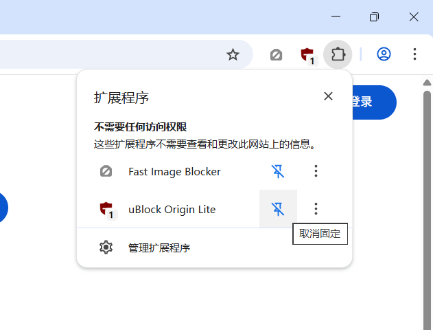 1. 固定图标:右上角扩展拼图 → 找到 Image Blocker → 点 图钉 固定到工具栏