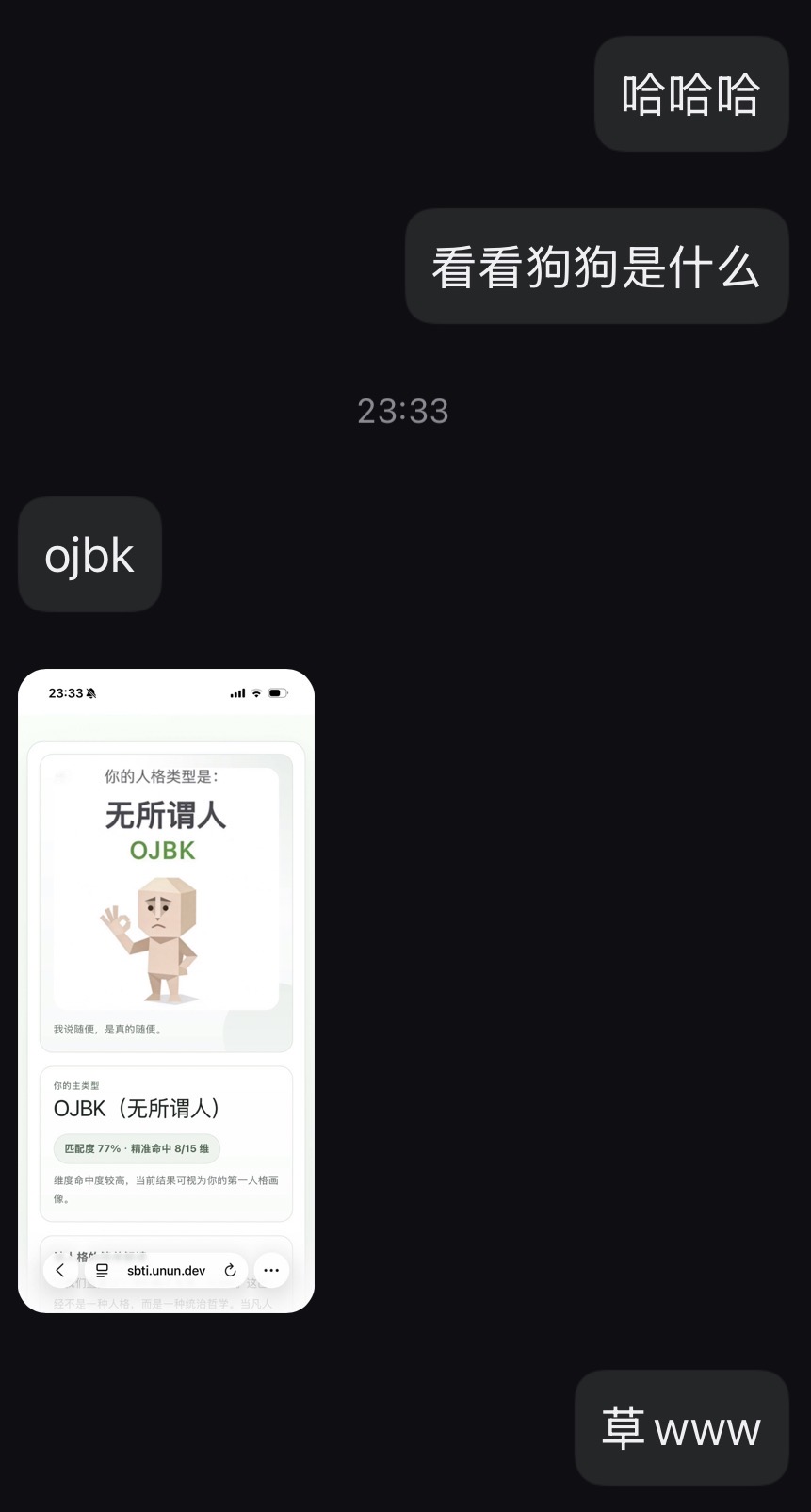 sovi:↑原来如此,我还以为是pp的小号呢qwer是yue的败犬:↑因为我是确实型人格()sovi:↑请问你是谁的小号吗?因为我们之前好像没有聊过天吧。qwer是yue的败犬:↑我是一个多情的人符合印象了()
