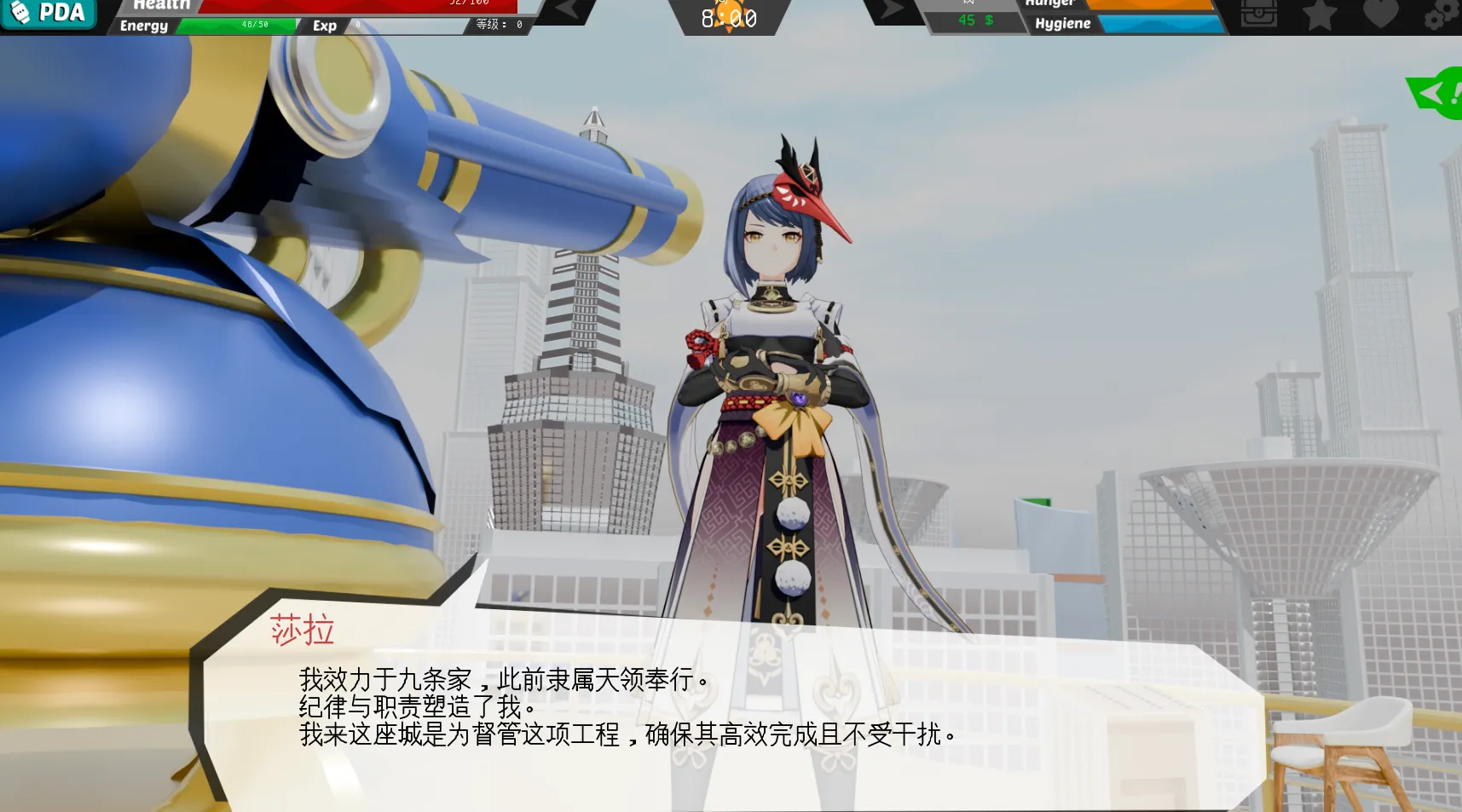 在去城市摩天大厦顶部可以遇到阿贝多或者萨拉(每天这俩轮换)对话可以知道有人破坏大炮,通过不断和阿贝多和萨拉直接传话,每天去看一次过上几天能完成。最后结局是抓到了犯人,然后可以让你选择让萨拉要么吃了犯人或者当玩具;